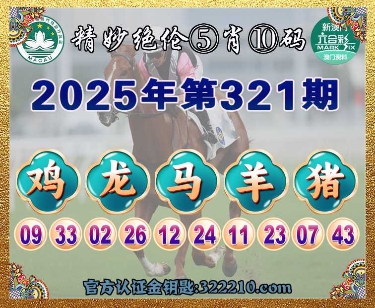 321期:  ♣️『精妙绝伦』  ♣️⑤肖⑩码 ♣️【鸡龙马猪】开:羊23