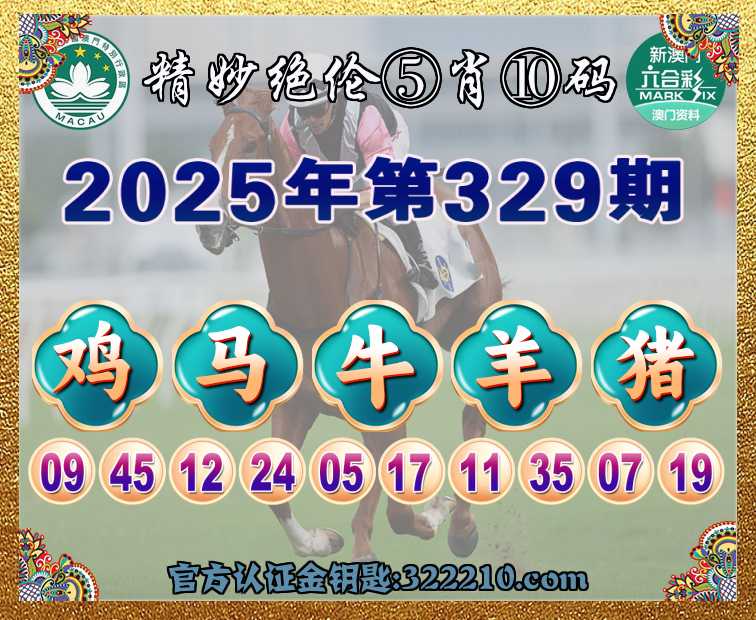 329期:  ♣️『精妙绝伦』  ♣️⑤肖⑩码 ♣️【鸡马羊猪】开:牛17