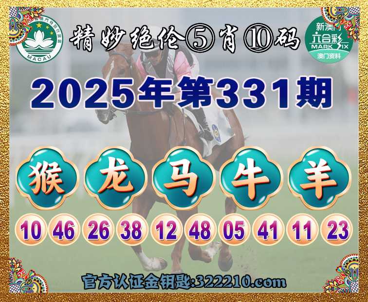 331期:  ♣️『精妙绝伦』  ♣️⑤肖⑩码 ♣️【猴马牛羊】开:龙26