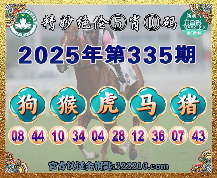 335期:  ♣️『精妙绝伦』  ♣️⑤肖⑩码 ♣️【猴虎马猪】开:狗44
