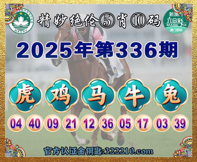 336期:  ♣️『精妙绝伦』  ♣️⑤肖⑩码 ♣️【虎鸡马兔】开:牛17