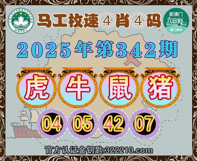 342期:《马工枚速》 👚④肖④码👚【牛鼠猪】【04.05.42.07】开:虎04