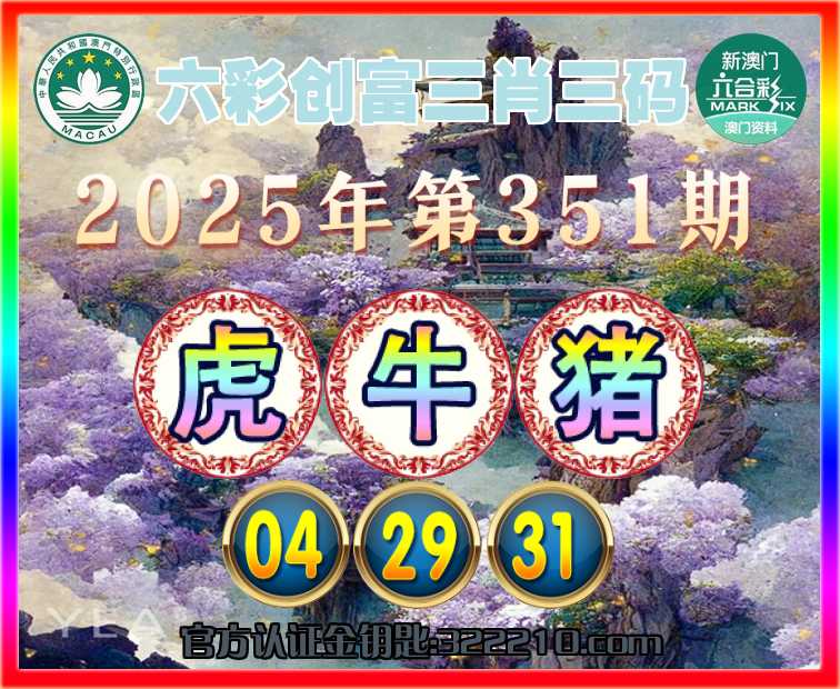 351期:『六彩创富』 ☺️三肖三码☺️【牛猪】【04.29.31】开:虎04