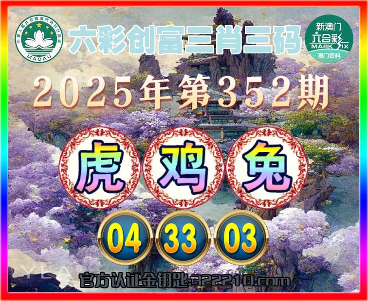 352期:『六彩创富』 ☺️三肖三码☺️【虎鸡兔】【04.33.03】开:00准