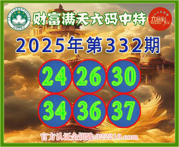 332期:〖财富满天〗 ♦️六码中特♦️【24.26.30.34.36.37】开:26