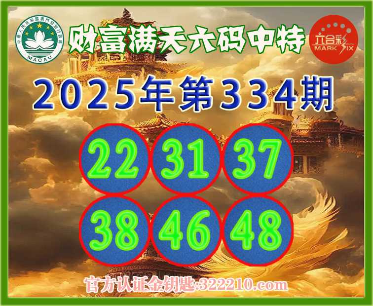 334期:〖财富满天〗 ♦️六码中特♦️【22.31.37.38.46.48】开:46