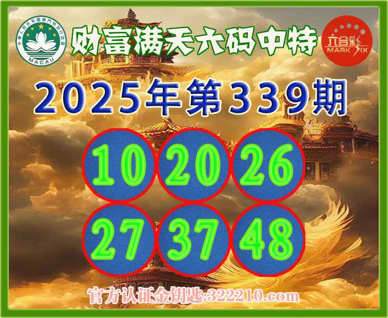 339期:〖财富满天〗 ♦️六码中特♦️【10.20.26.27.37.48】开:48