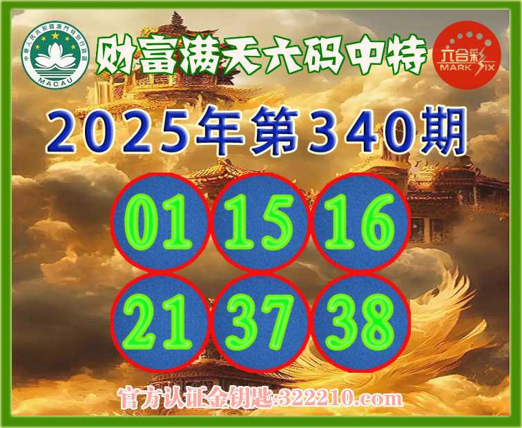 340期:〖财富满天〗 ♦️六码中特♦️【01.15.16.21.37.38】开:16
