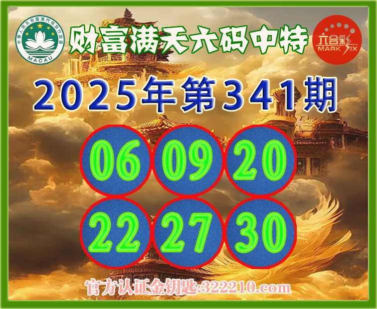 341期:〖财富满天〗 ♦️六码中特♦️【06.09.20.22.27.30】开:06