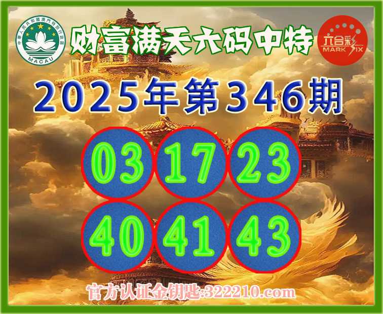 346期:〖财富满天〗 ♦️六码中特♦️【03.17.23.40.41.43】开:03