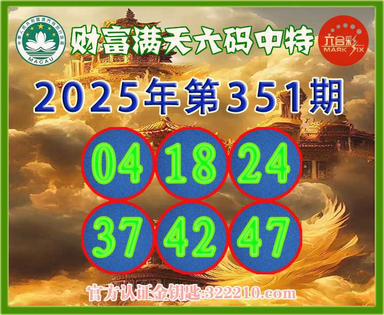 351期:〖财富满天〗 ♦️六码中特♦️【04.18.24.37.42.47】开:04