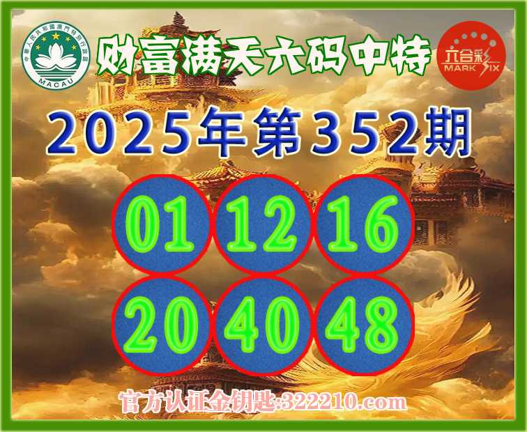 352期:〖财富满天〗 ♦️六码中特♦️【01.12.16.20.40.48】开:00准
