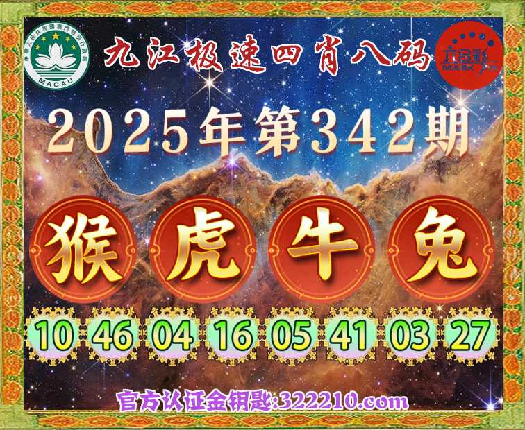 342期:『九江极速』 🎪四肖八码🎪【猴牛兔】开:虎04