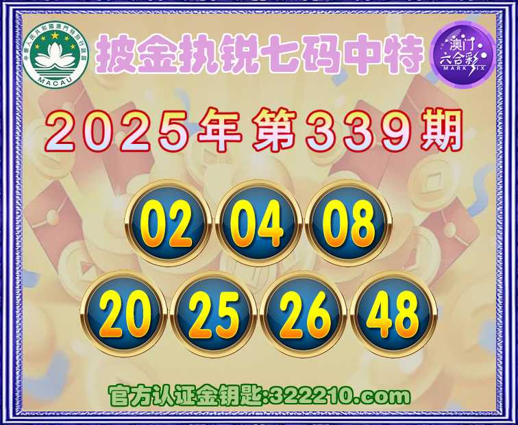 339期: 披金执锐 🏆七码中特🏆【02.04.08.20.25.26.48】开:48