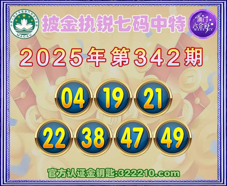 342期: 披金执锐 🏆七码中特🏆【04.19.21.22.38.47.49】开:04