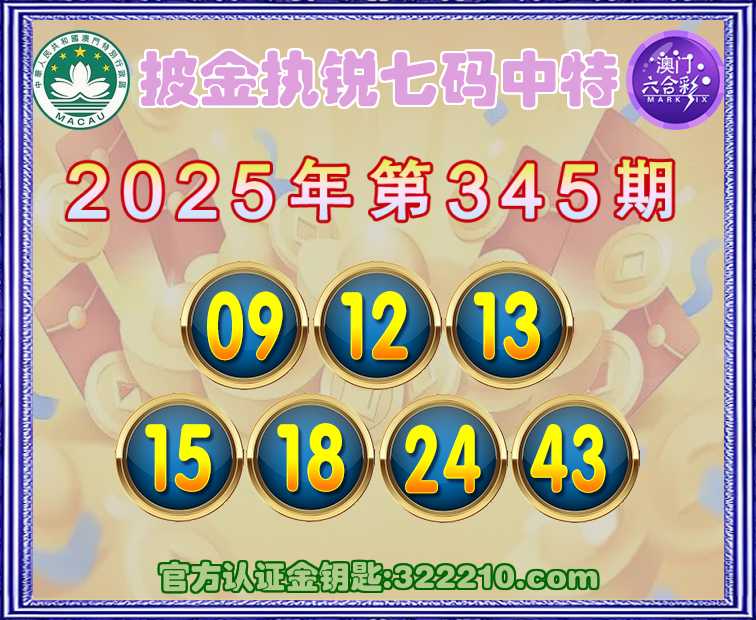 345期: 披金执锐 🏆七码中特🏆【09.12.13.15.18.24.43】开:24