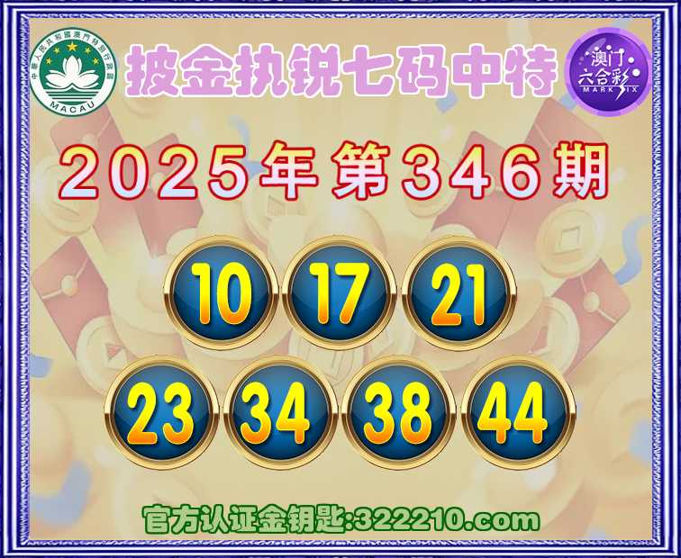 346期: 披金执锐 🏆七码中特🏆【10.17.21.23.34.38.44】开:03