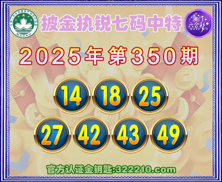 350期: 披金执锐 🏆七码中特🏆【14.18.25.27.42.43.49】开:49