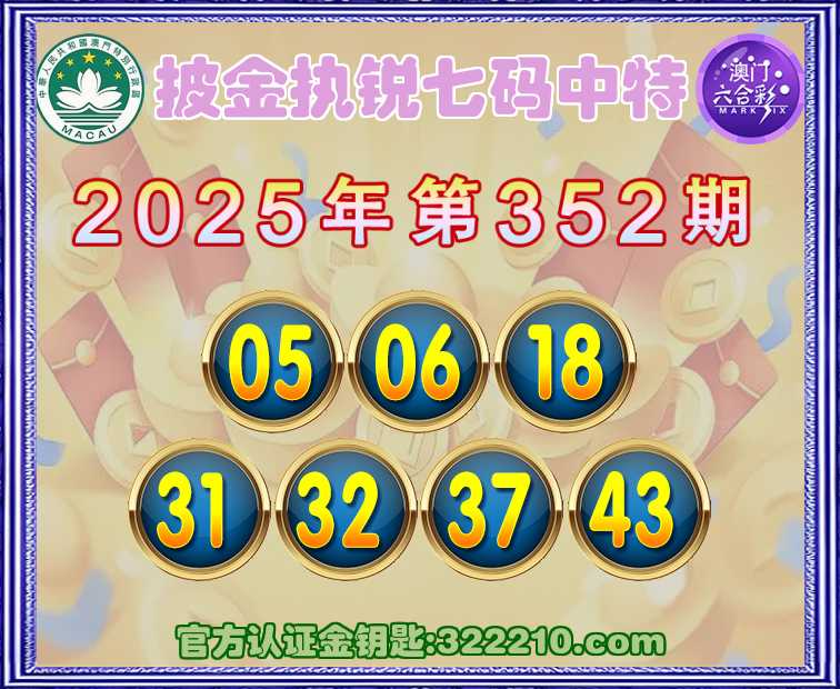 352期: 披金执锐 🏆七码中特🏆【05.06.18.31.32.37.43】开:44