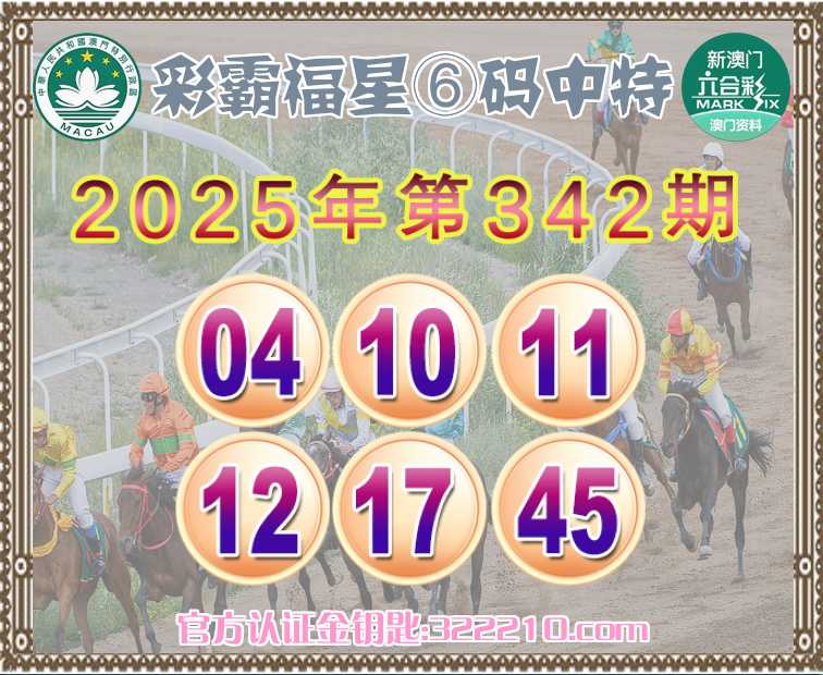 342期:《彩霸福星》 😍⑥码中特😍【04.10.11.12.17.45】开:04