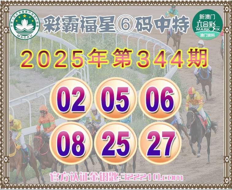 344期:《彩霸福星》 😍⑥码中特😍【02.05.06.08.25.27】开:27