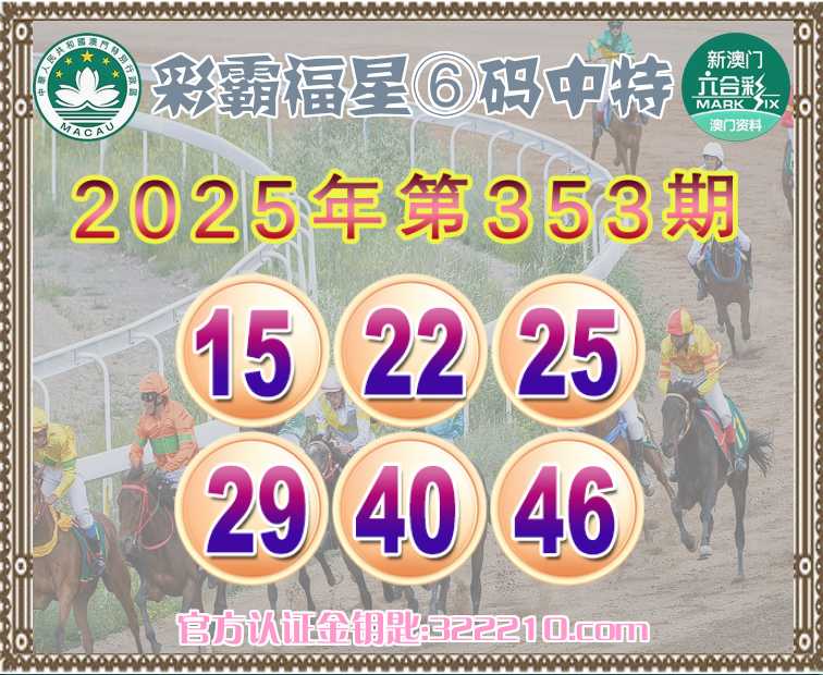 353期:《彩霸福星》 😍⑥码中特😍【15.22.25.29.40.46】开:01