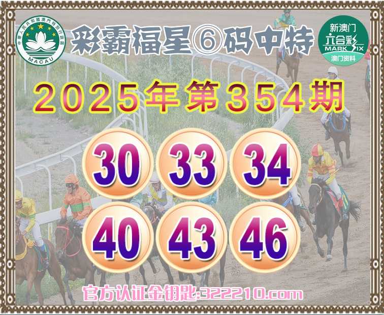 354期:《彩霸福星》 😍⑥码中特😍【30.33.34.40.43.46】开:30