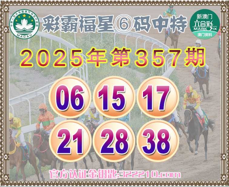 357期:《彩霸福星》 😍⑥码中特😍【06.15.17.21.28.38】开:00准