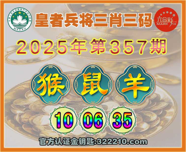 主题: 357期:金钥匙高手【皇者兵将🔥三肖三码】正版澳彩