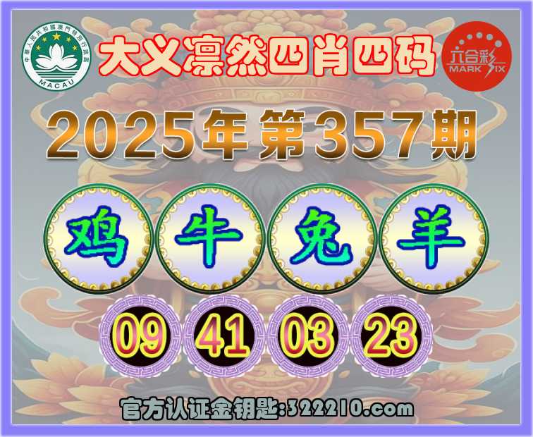 主题: 357期:金钥匙高手【大义凛然🔥四肖四码】正版澳彩
