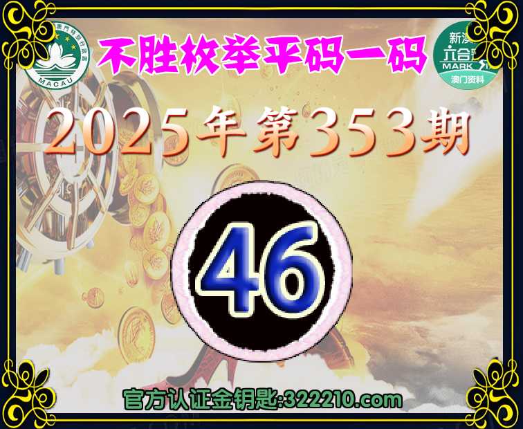 353期: 不胜枚举 🍔平码一码🍔【46】开:猴46