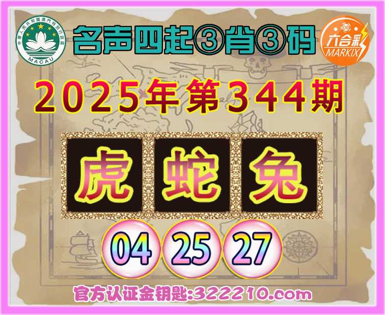 344期:【名声四起】 ♠️③肖③码♠️【虎蛇】【04.25.27】开:兔27