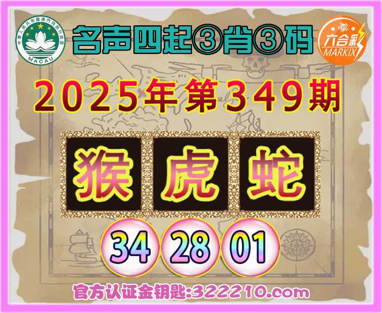 349期:【名声四起】 ♠️③肖③码♠️【虎蛇】【34.28.01】开:猴22