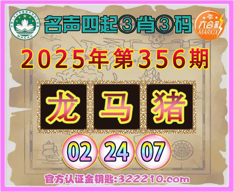 356期:【名声四起】 ♠️③肖③码♠️【龙猪】【02.24.07】开:马24