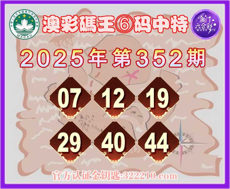 352期:〖澳彩碼王〗 🕯⑥码中特🕯【07.12.19.29.40.44】开:44