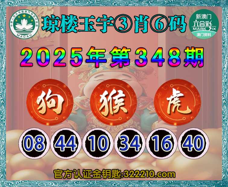 348期:『琼楼玉宇』 🥉③肖⑥码🥉【狗猴】开:虎16