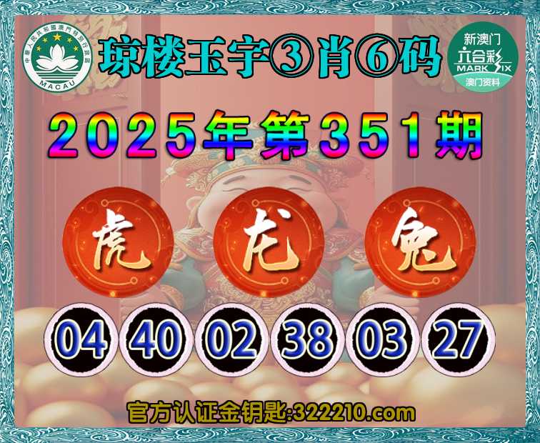 351期:『琼楼玉宇』 🥉③肖⑥码🥉【龙兔】开:虎04