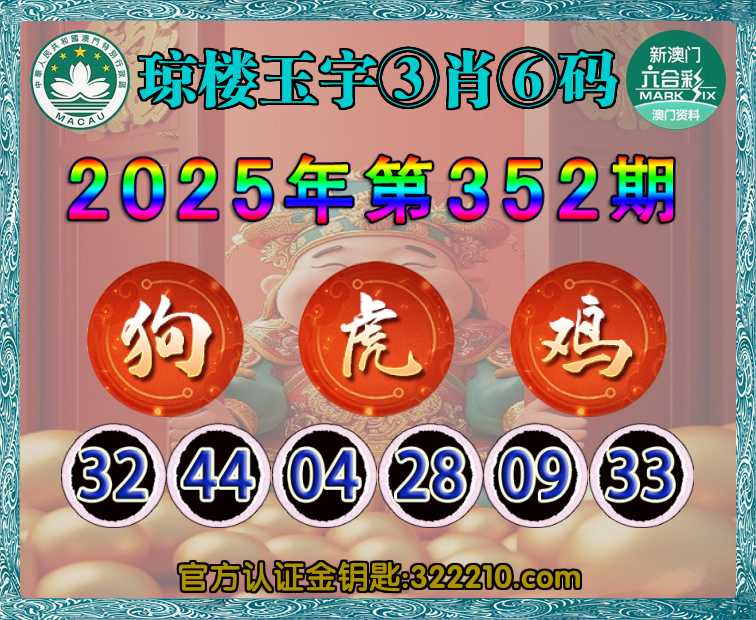 352期:『琼楼玉宇』 🥉③肖⑥码🥉【虎鸡】开:狗44