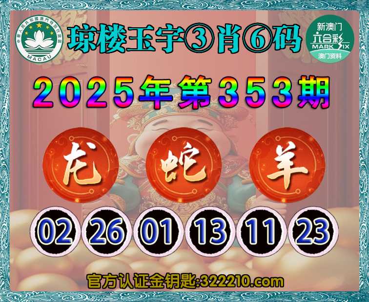 353期:『琼楼玉宇』 🥉③肖⑥码🥉【龙羊】开:蛇01