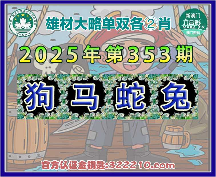 353期: 👘《雄材大略》 👘单双各②肖👘【狗.马..兔】开:蛇01