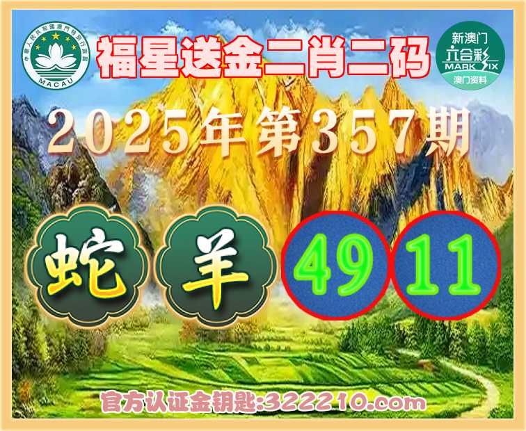 357期:《福星送金》 ♣️二肖二码♣️【羊】【49.11】开:蛇49