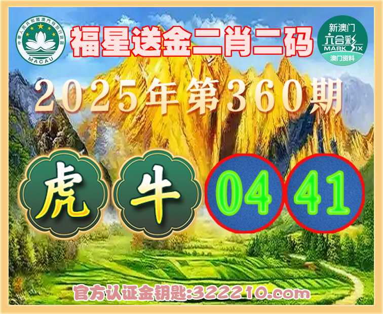 360期:《福星送金》 ♣️二肖二码♣️【虎】【04.41】开:牛41