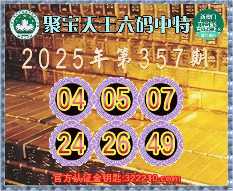 357期:【聚宝天王】 🎖️六码中特🎖️【04.05.07.24.26.49】开:49
