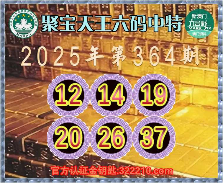 364期:【聚宝天王】 🎖️六码中特🎖️【12.14.19.20.26.37】开:12