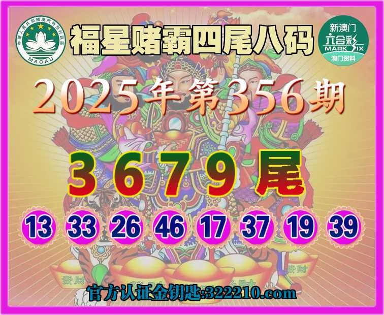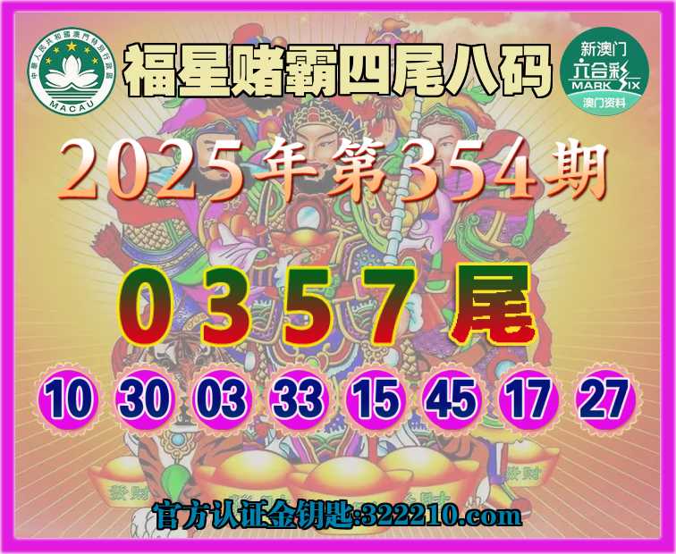 354期: 🏅《福星赌霸》 🏅四尾八码🏅【0357尾】开:30