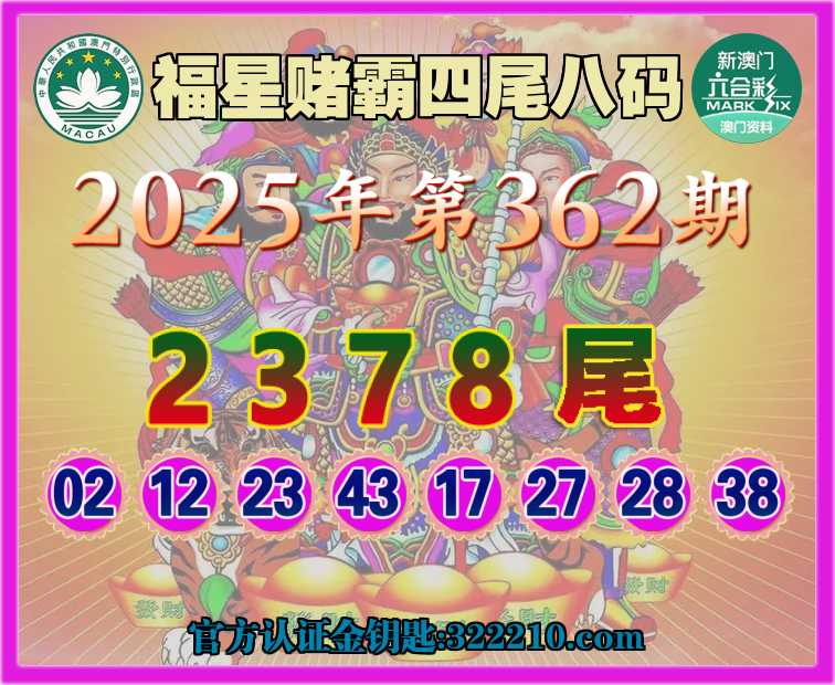 362期: 🏅《福星赌霸》 🏅四尾八码🏅【2378尾】开:23