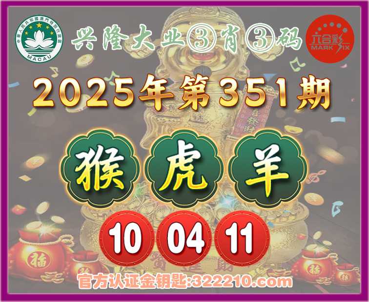 351期:〖兴隆大业〗 ♠️③肖③码♠️【猴羊】【10.04.11】开:虎04