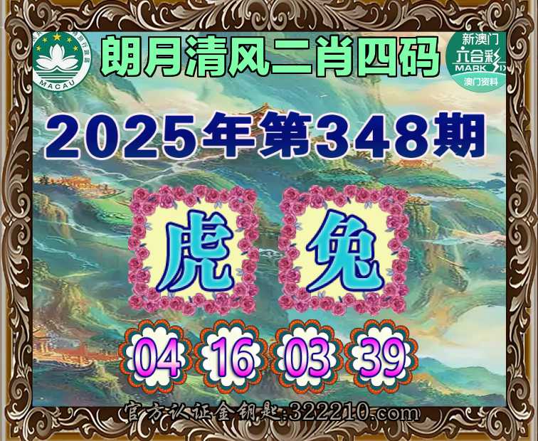 348期:『朗月清风』  ♣️二肖四码 ♣️【兔】【04.16.03.39】开:虎16