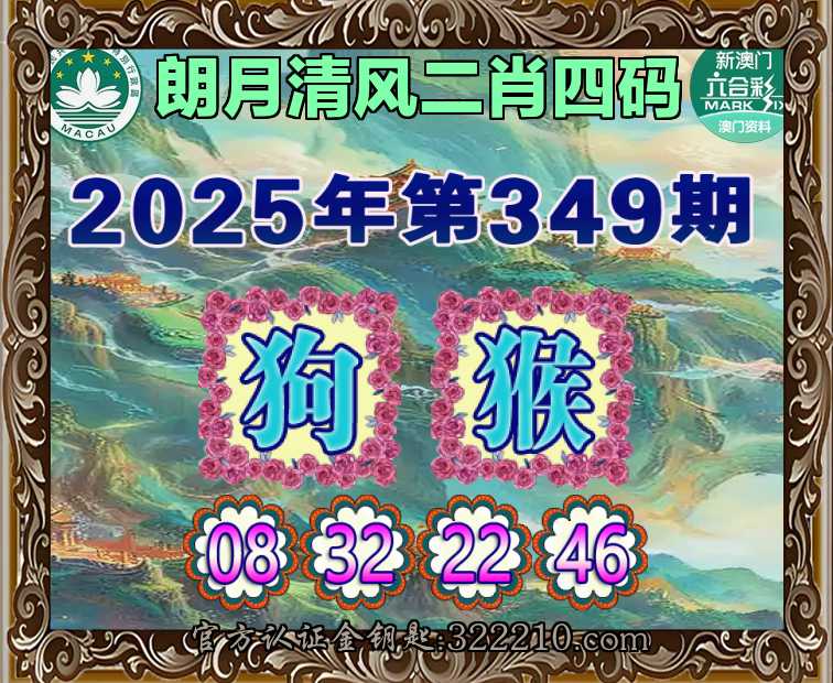349期:『朗月清风』  ♣️二肖四码 ♣️【狗】【08.32.22.46】开:猴22