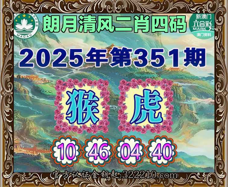 351期:『朗月清风』  ♣️二肖四码 ♣️【猴】【10.46.04.40】开:虎04